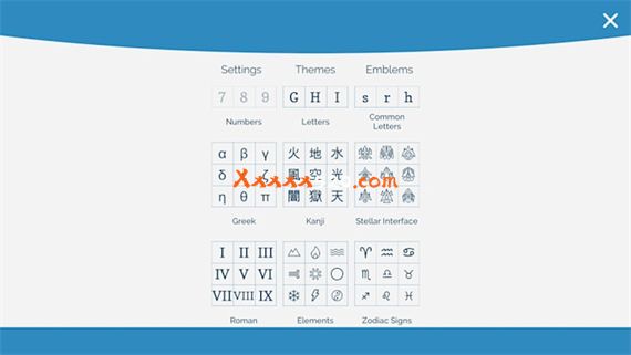 Sudoku Zenkai 还具有不同的主题,让您可以选择最喜欢的风格。厌倦了数字?使用数独 Zenkai 标志,您可以用字母、希腊语、汉字等为任何数独谜题增添趣味。